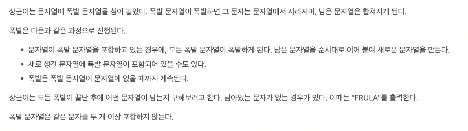 print(stack.isEmpty ? "FRULA" : stack.joined())