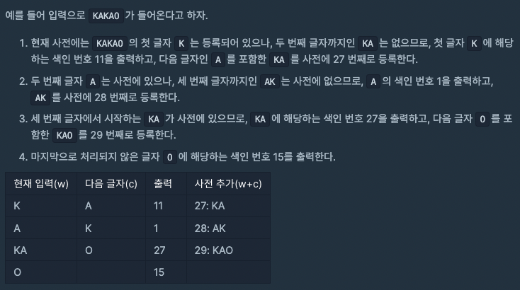 LZW ์์ถ ๋จ๊ณ๋ ์์ ๊ฐ๋ค.