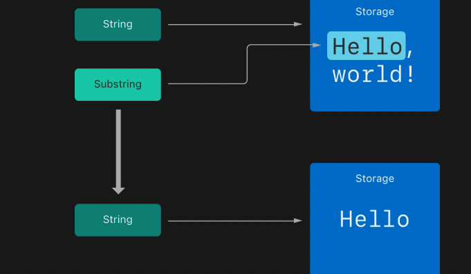 - Substrings์ด ์๋ ๋ฌธ์์ด์ ์ ์ฅํ๋๋ฐ ์ฌ์ฉ๋ ๋ฉ๋ชจ๋ฆฌ์ ์ผ๋ถ ๋๋ ๋ค๋ฅธ ๋ถ๋ถ ๋ฌธ์์ด์ ์ ์ฅํ๋๋ฐ ์ฌ์ฉ๋๋ ๋ฉ๋ชจ๋ฆฌ์ ์ผ๋ถ๋ฅผ ์ฌ์ฌ์ฉํ ์ ์๋ค..!