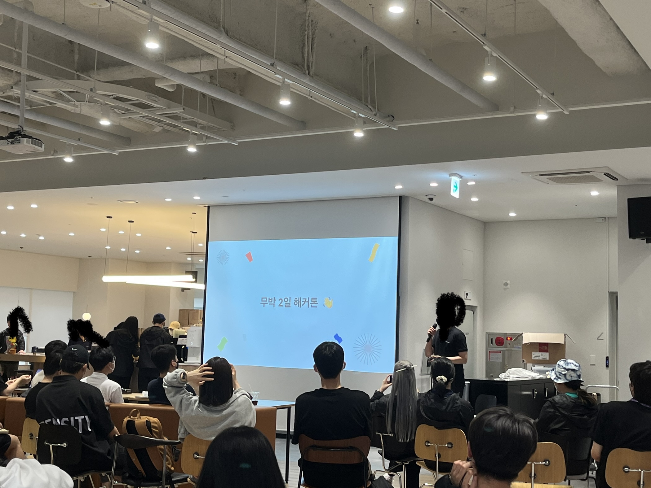 λ¬΄λ° 2μΌλ‘ μ§νν ν΄μ»€ν€μΌλ‘ iOS κ°λ°μ 2λͺ , λ°±μλ κ°λ°μ 2λͺ , λμμ΄λ 1λͺ μΌλ‘ νμ΄ μ΄λ£¨μ΄μ‘λ€.