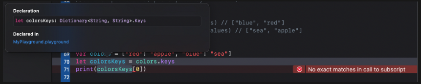 print(colors) // ["black": "phone", "red": "apple", "blue": "sea"]