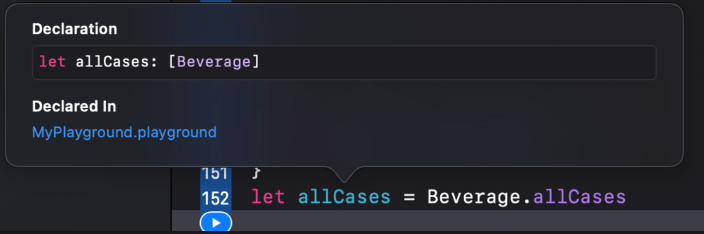 μ΄κ±°ν μ΄λ¦ λ€μ : CaseIterable μ μμ± → allCases νλ‘νΌν°λ arrayλ‘ κ΄λ ¨ λ©μλ μ¬μ© κ°λ₯