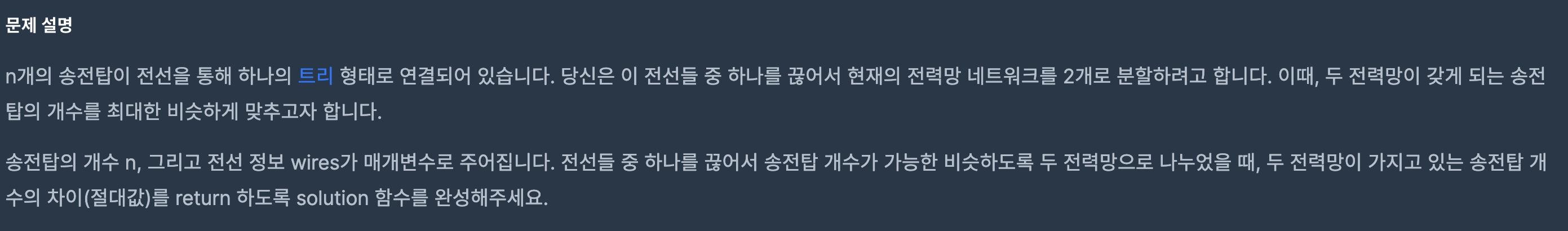 func solution(_ n:Int, _ wires:[[Int]]) -> Int {
