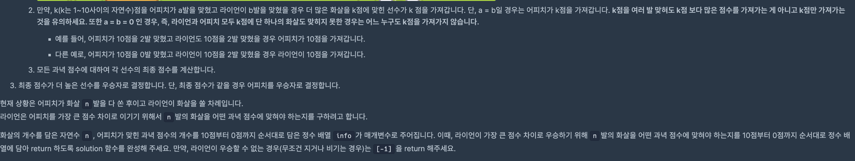 let apeachWinCount = info[depth] + 1 // ์ดํผ์น๋ฅผ ์ด๊ธธ ์ ์๋ ๊ฐ์