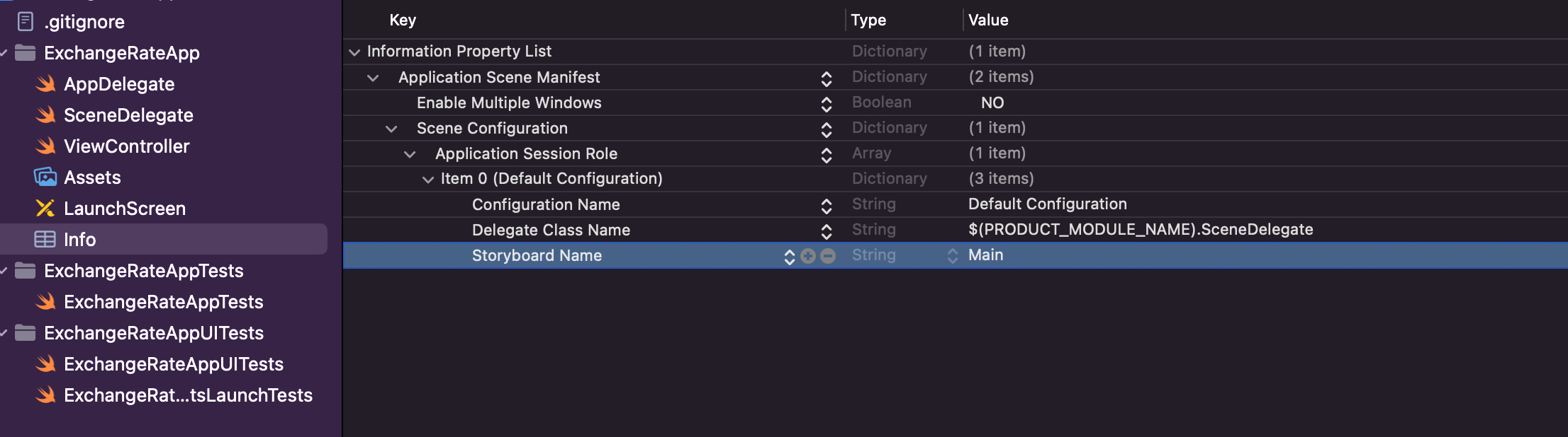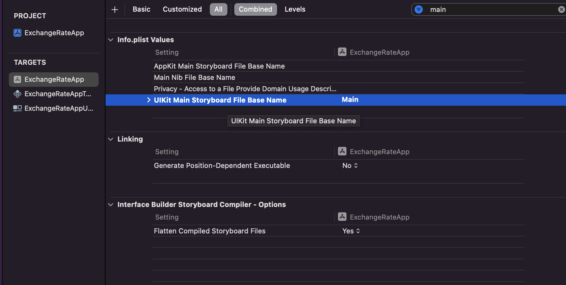 2. Project target - Build Settings - main๊ฒ์ - UiKit Main Storybard File base Name ์ญ์